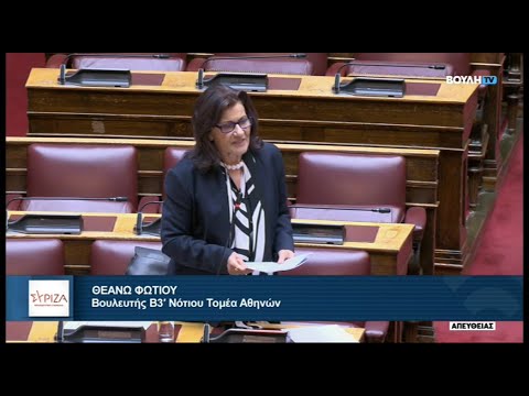 Κατά τη συζήτηση, στη Βουλή, με τον Υφυπουργό Εθνικής Οικονομίας και Οικονομικών κ. Χάρη Θεοχάρη, της Επίκαιρης ερώτησης με θέμα την ανυπαρξία κυβερνητικής πολιτικής για ενίσχυση της πρόσβασης των νέων σε δικό τους σπίτι, η Θεανώ Φωτίου, βουλευτής Β3 Νότιου Τομέα Αθήνας του ΣΥΡΙΖΑ-Προοδευτική Συμμαχία, τόνισε:
